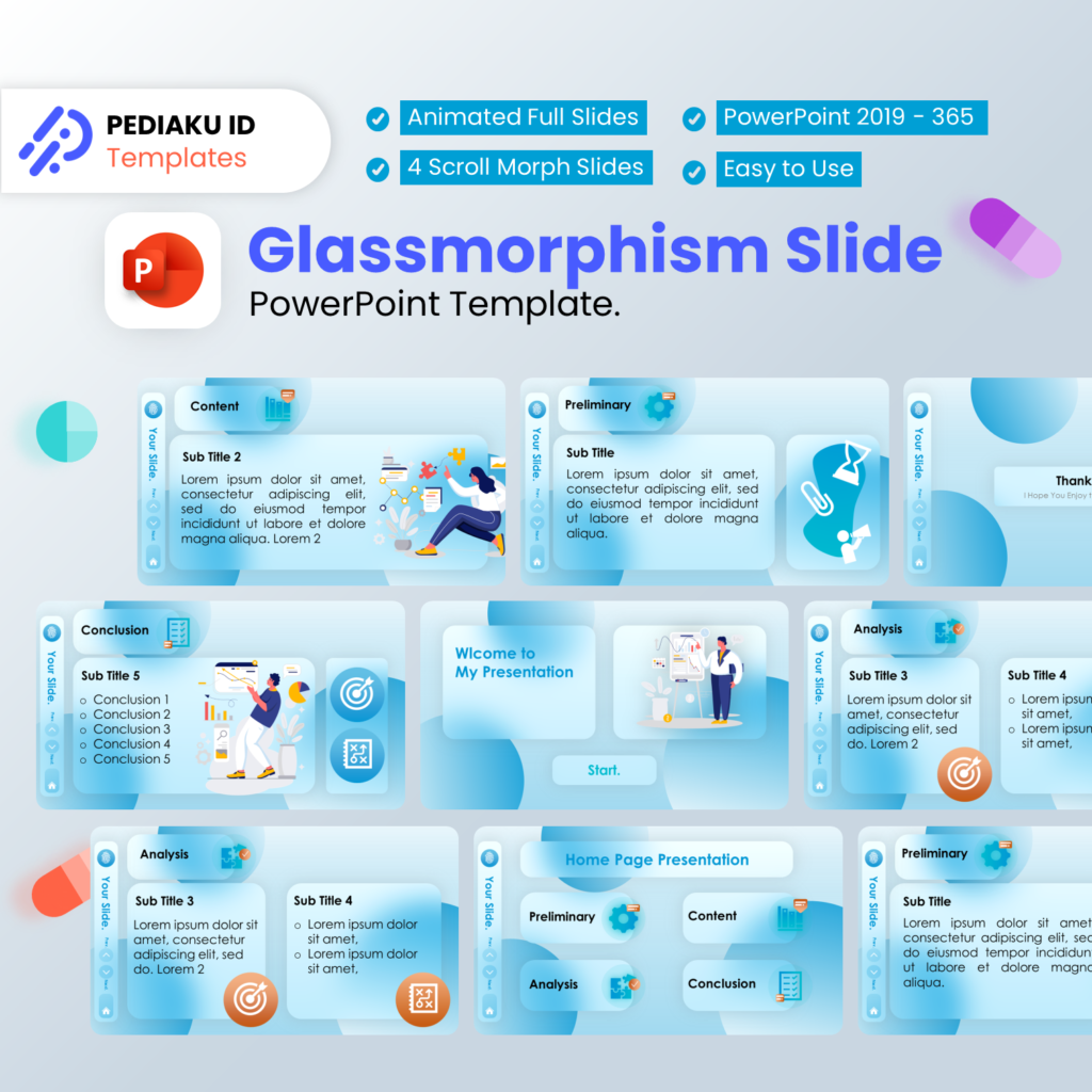 Template PowerPoint Pediaku ID Glassmorphism PowerPoint Rp 28.500 Untuk PPT: 2019 sampai dengan 365 File download template berupa file ZIP: (Guide Line, File PPT, Link Tutorial dan .xml Color Pallete) File otomatis akan dikirimkan ke email anda setelah sukses pembayaran Klik Video Produk untuk melihat Preview Template Metode Pembayaran: Check Out Template PowerPoint Lainnya