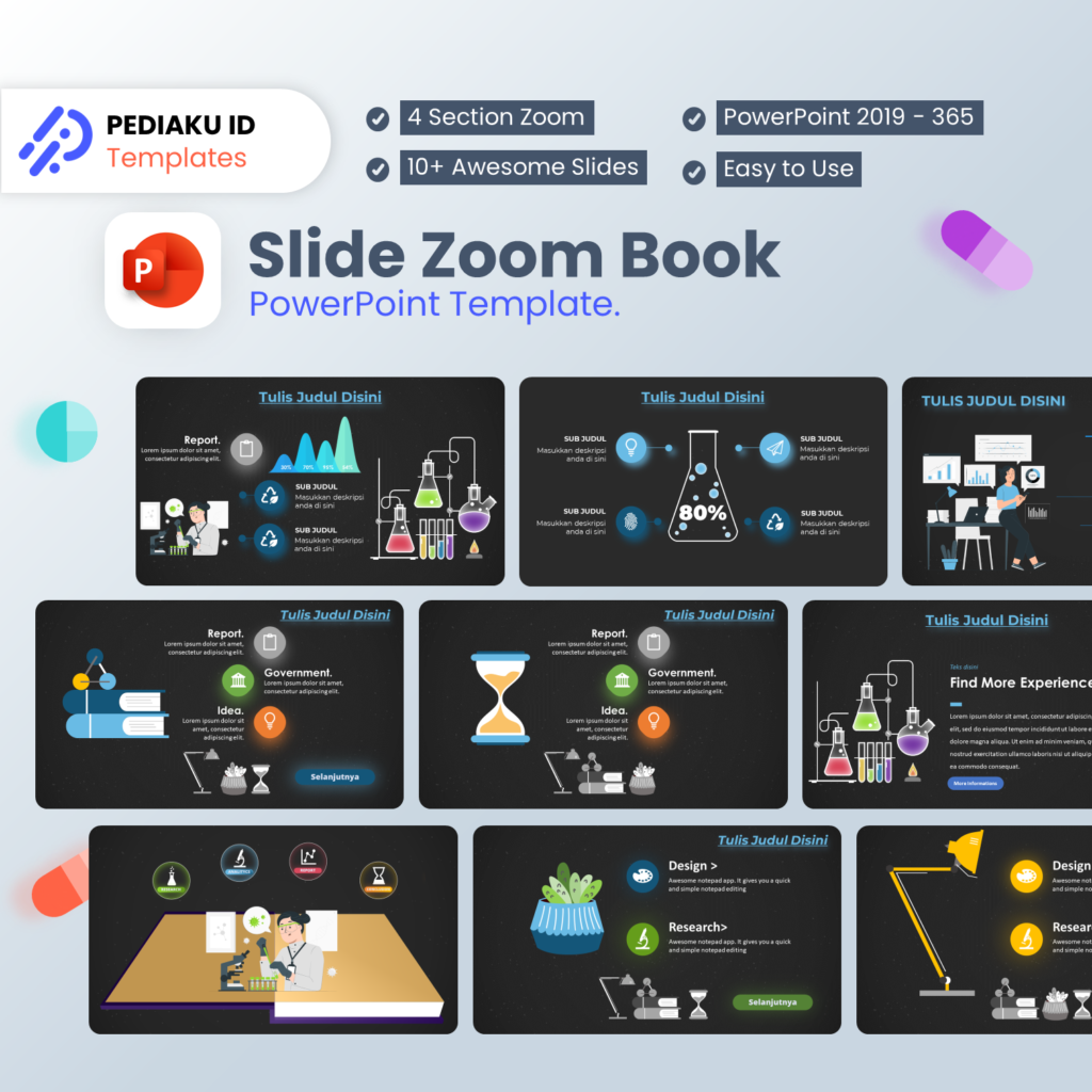 Template PowerPoint Pediaku ID Seminar Hasil Slide Morph PowerPoint Rp 35.000 Untuk PPT: 2019 sampai dengan 365 File download template berupa file ZIP: (Guide Line, File PPT, Link Tutorial dan .xml Color Pallete) File otomatis akan dikirimkan ke email anda setelah sukses pembayaran Klik Video Produk untuk melihat Preview Template Metode Pembayaran: Check Out Template PowerPoint Lainnya